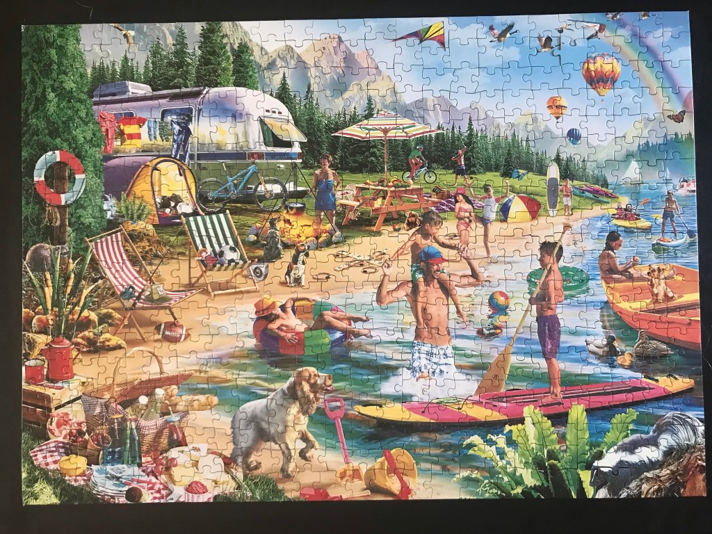 As I am putting together a jigsaw puzzle, there are pieces missing to make an oar in a lake scene.